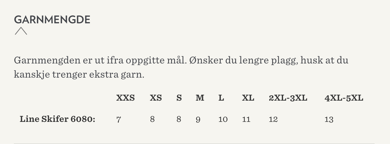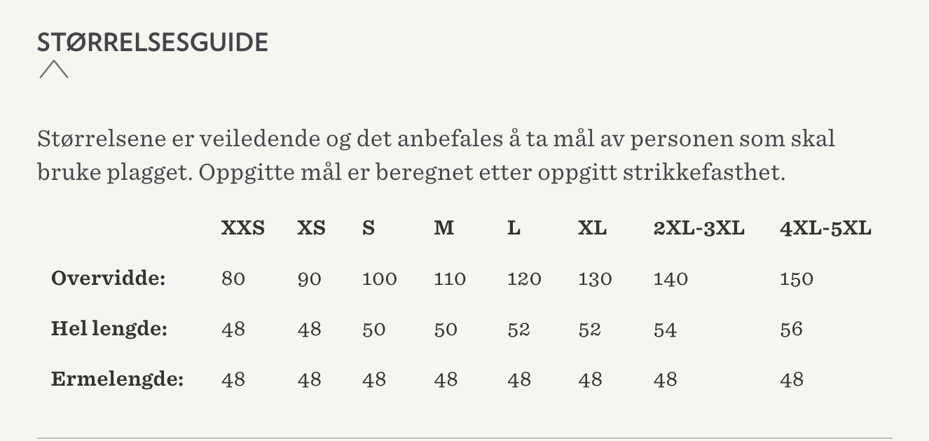omganger med større pinne for å tilføre litt vidde. Halskanten strikkes til slutt.