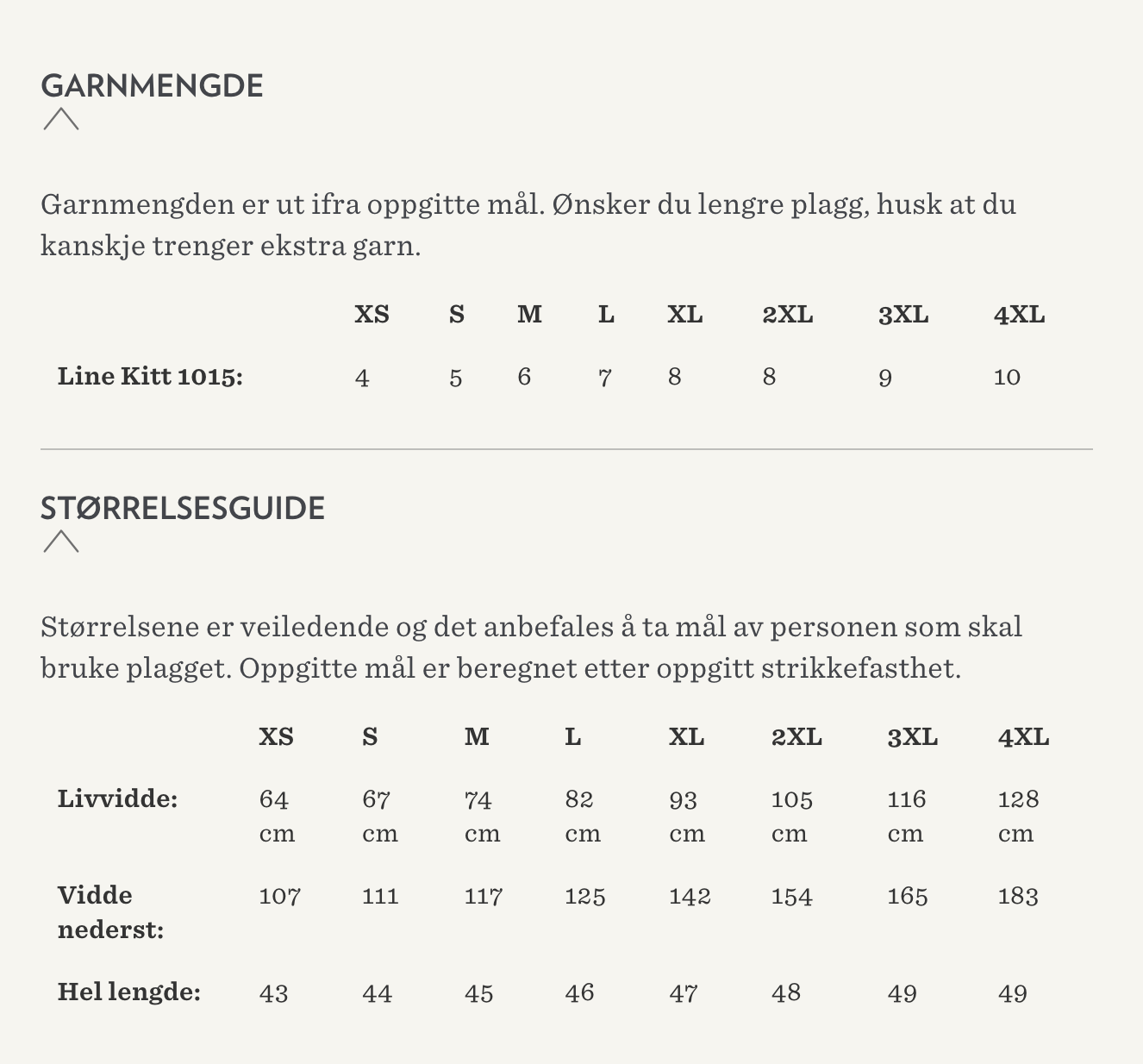 og strikkes frem og tilbake til ned under ermene. Deretter samles for- og bakstykket og det strikkes rundt til hel lengde, før det avsluttes med vrangbord.