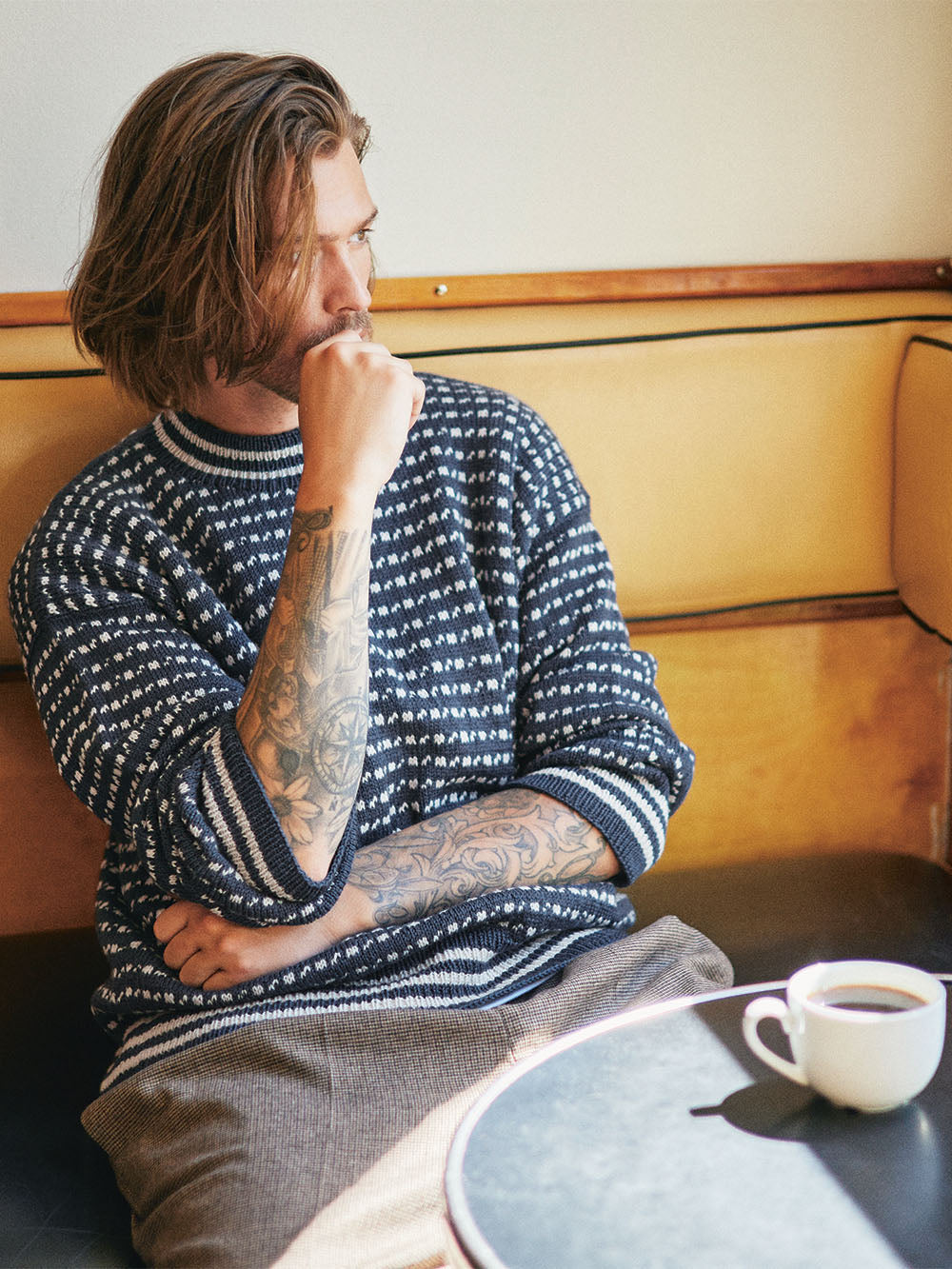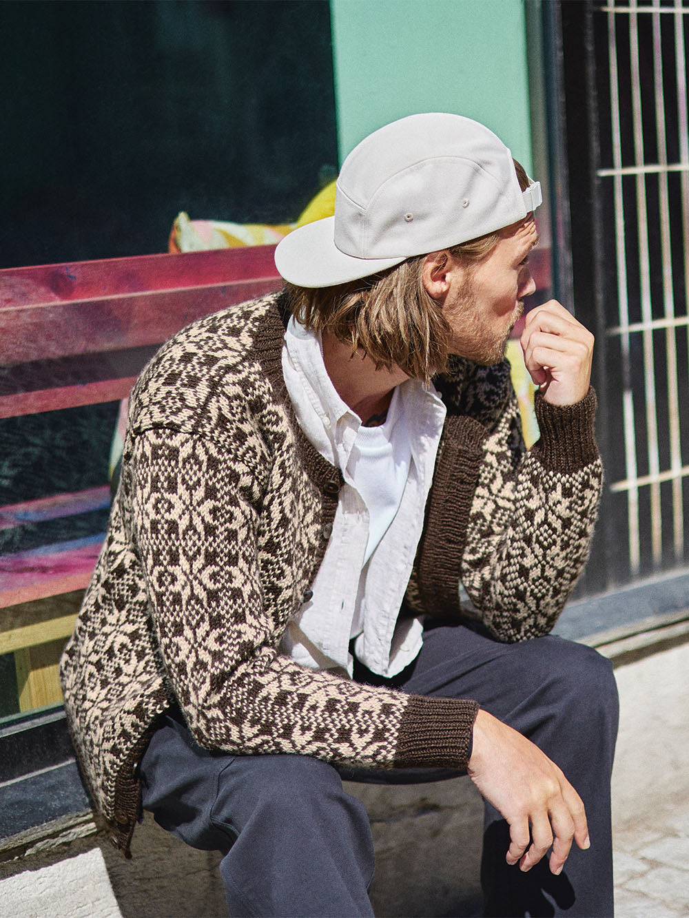 Denne gangen har vi tatt norske ikoner med ut i byen. Fordi tradisjonsstrikk er aktuelt i dagens trendbilde og blir like mye brukt i hverdagen, i byens gater, som i naturen.