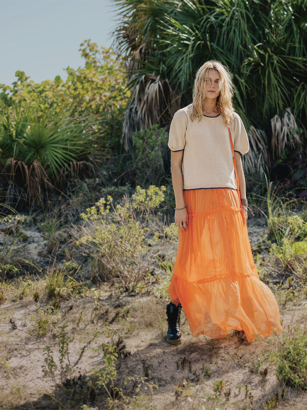 Her har vi både Dawn og Coral singlet, korte og lange kjoler, den trendy Talia cardigan i rosa, Cherry genser med striper, Molly tee med puff-ermer og April bluse med delikat hullmønster. Liker du å hekle, kan du kaste deg over det fantastiske Cahla skjørt og Bailey’s bucket hat, begge passer perfekt til sommeren. Her er det mye å velge i. Strikk en favoritt eller fler, lek med farger og kvaliteter, strikk med melert effekt eller i ensfarget og gjør det til ditt eget