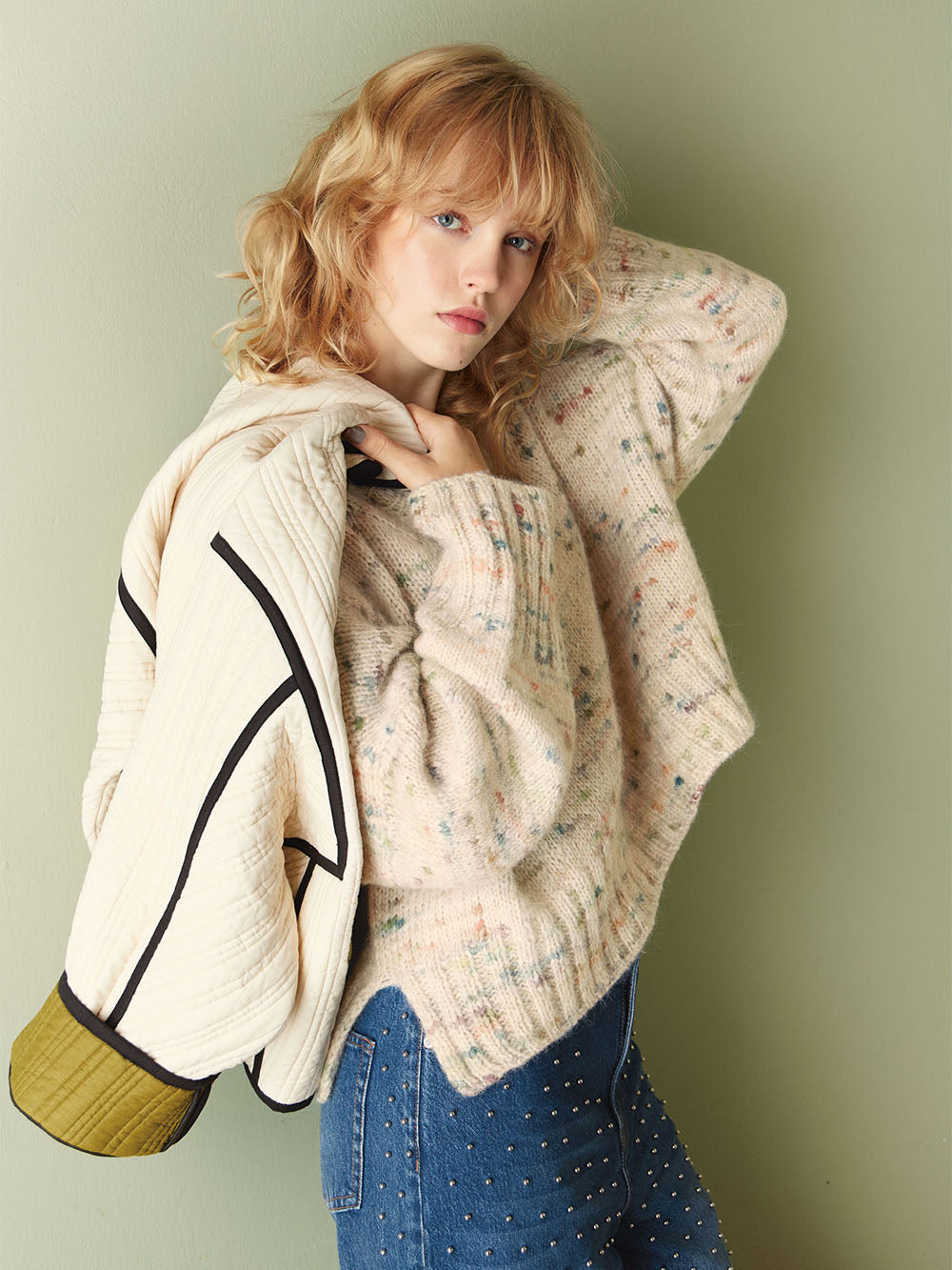 Poppy består av 50% superfine alpakka, 15% merinoull og 35% bomull. Fibrene er blåst inn i en bomullsstrømpe, noe som gir et mykt og lett plagg.