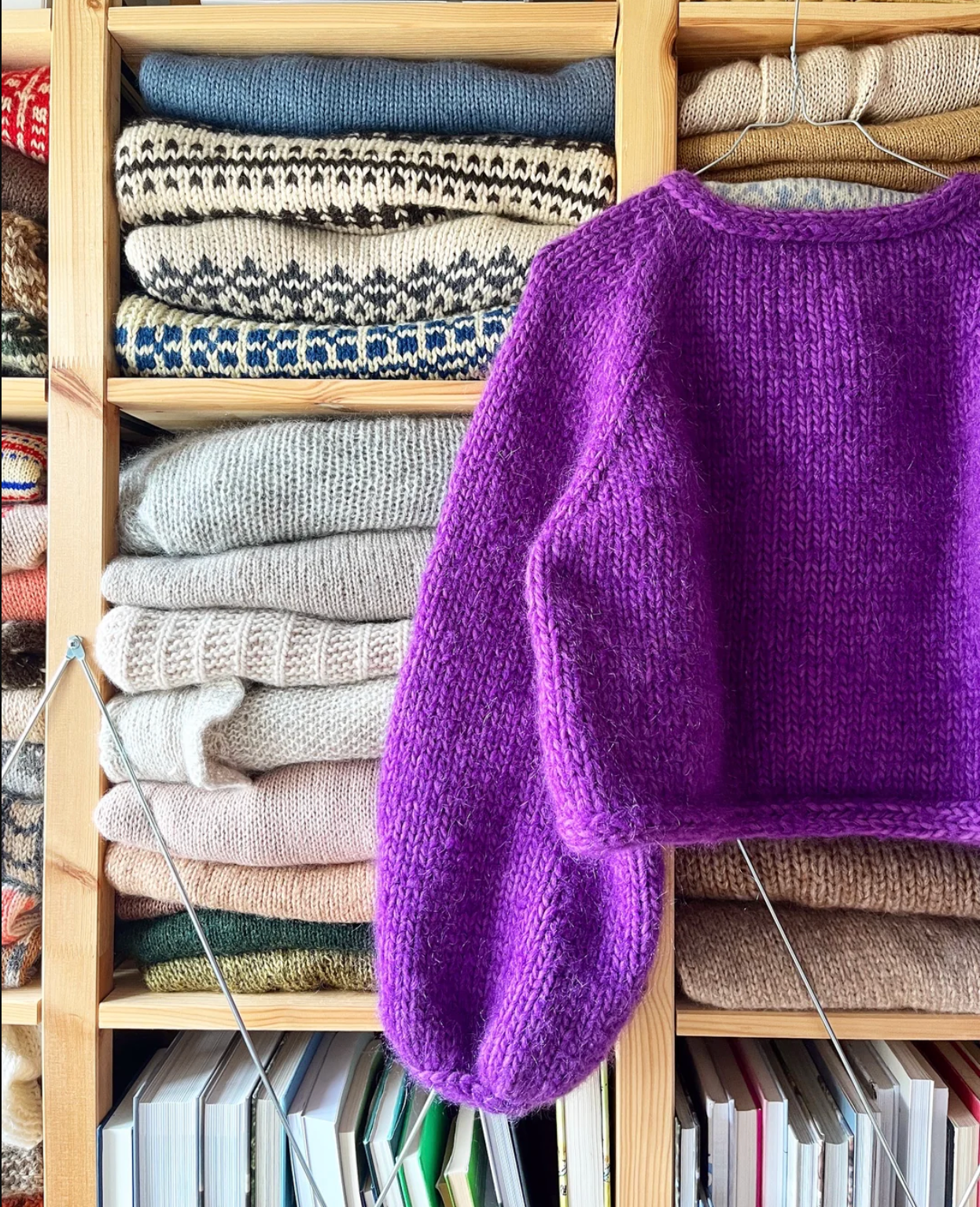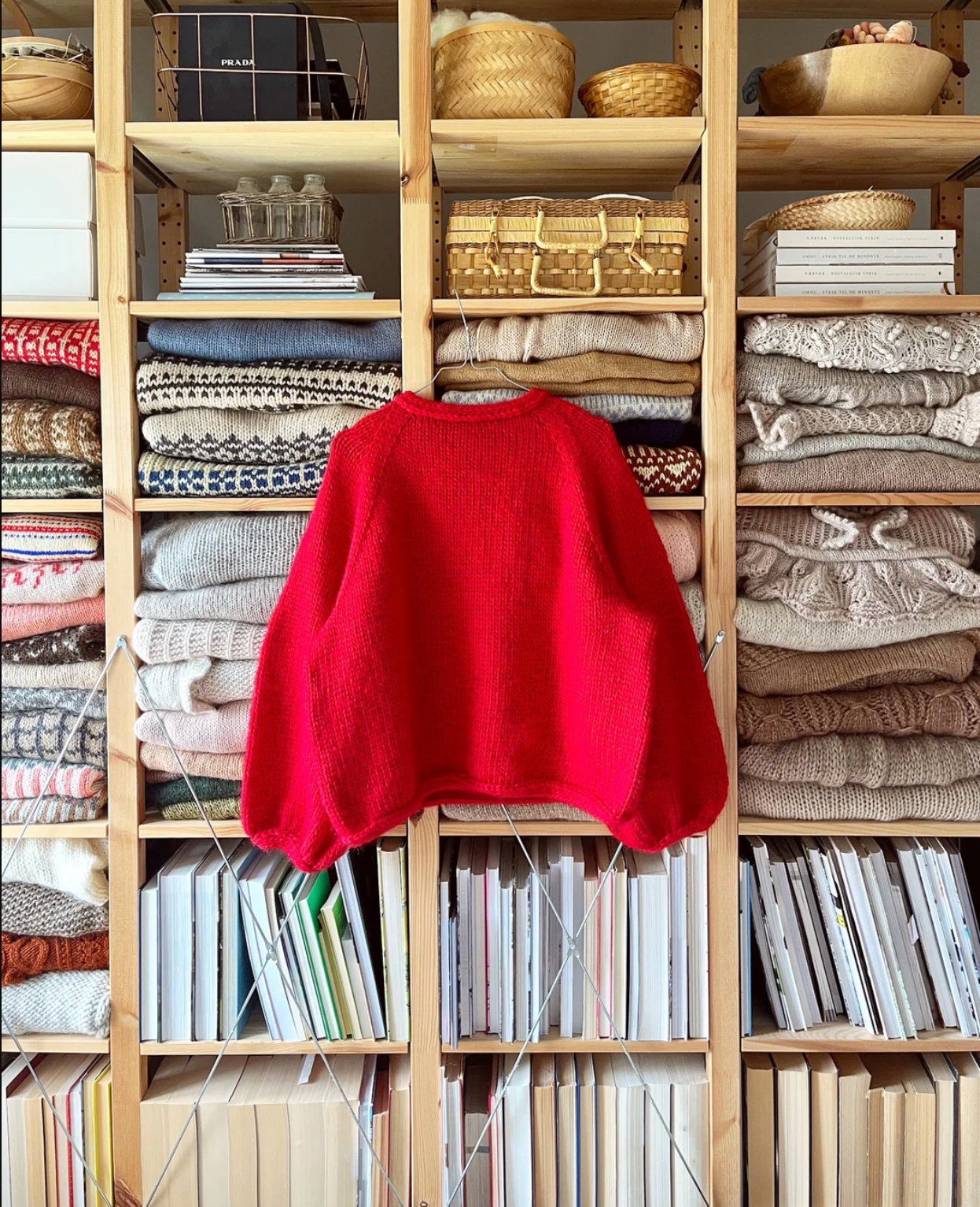 Arbeidsgang: Denne genseren strikkes rundt ovenfra og ned i glattstrikk, med raglanøkninger på bærestykket. Genseren har brede ermer, og alle kanter avsluttes med en tverrgående i-cord.