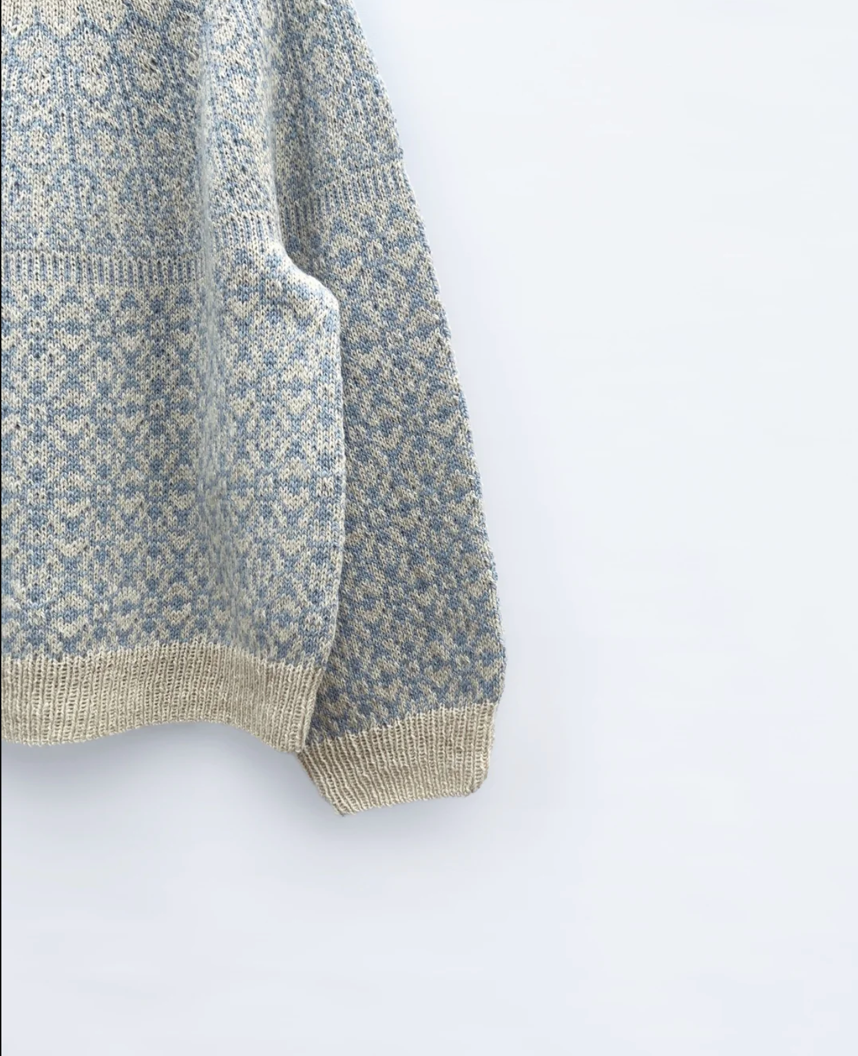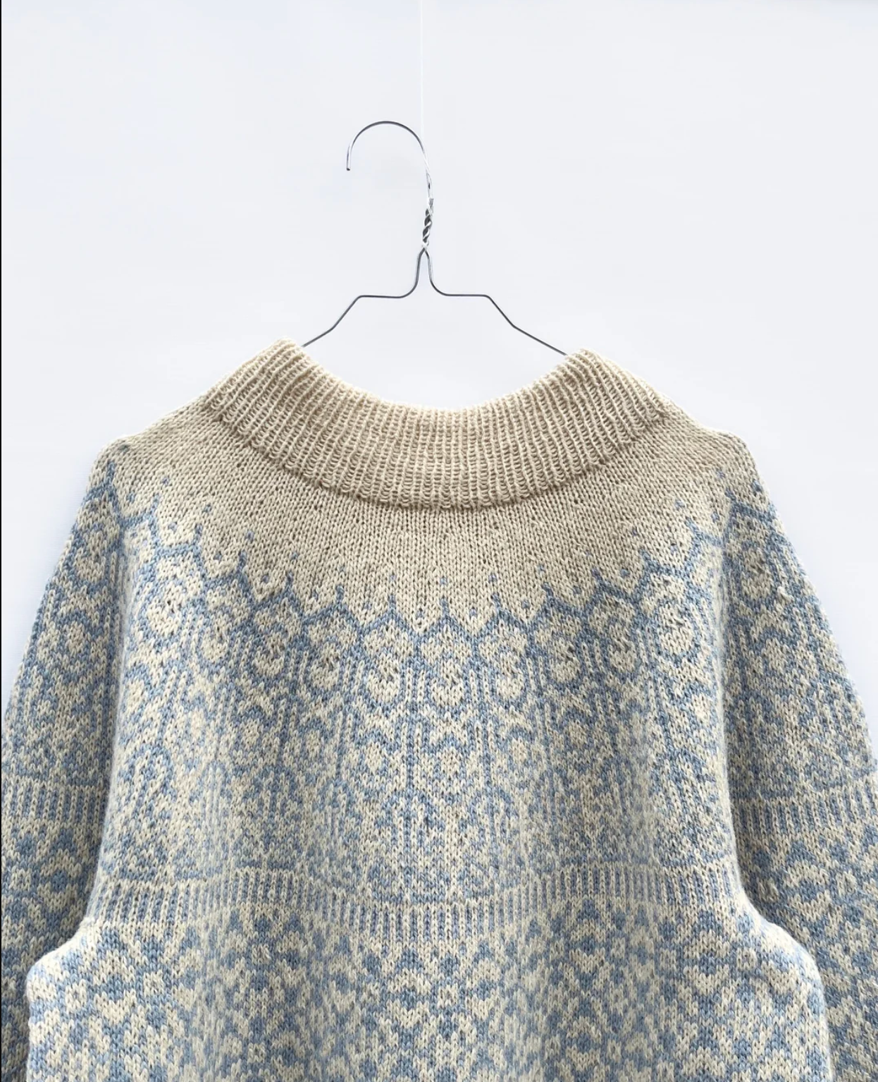 - Farge B (mønsterfarge): “Sol”, i fargen “Lys blå”, Hillesvåg Ullvarefabrikk (290m pr 100g).