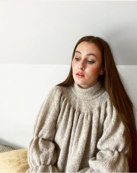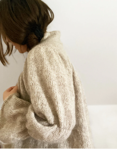 Range of motion: This blouse is designed to have a wide range of motion from the top of the yoke down. The range of motion is approx. 30-40 cm depending on your chest width. When choosing a size, use your own measured chest width as a starting point and let this determine which size you knit.