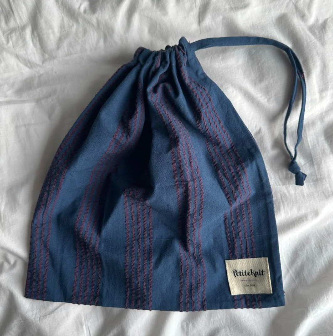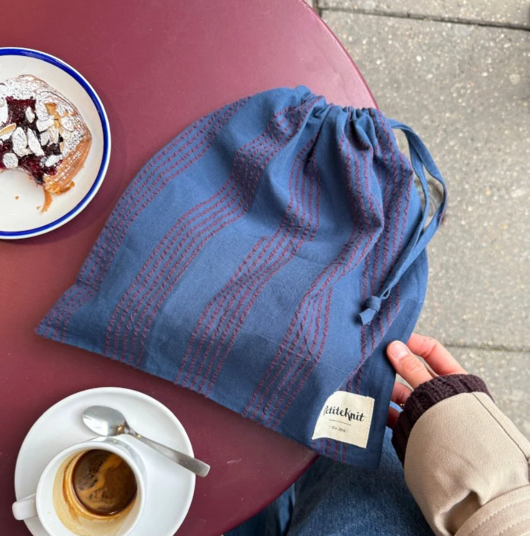 Knitter’s String Bag i myk økologisk seersucker. Til små og mellomstore prosjekter som skal raskt med på farten.
