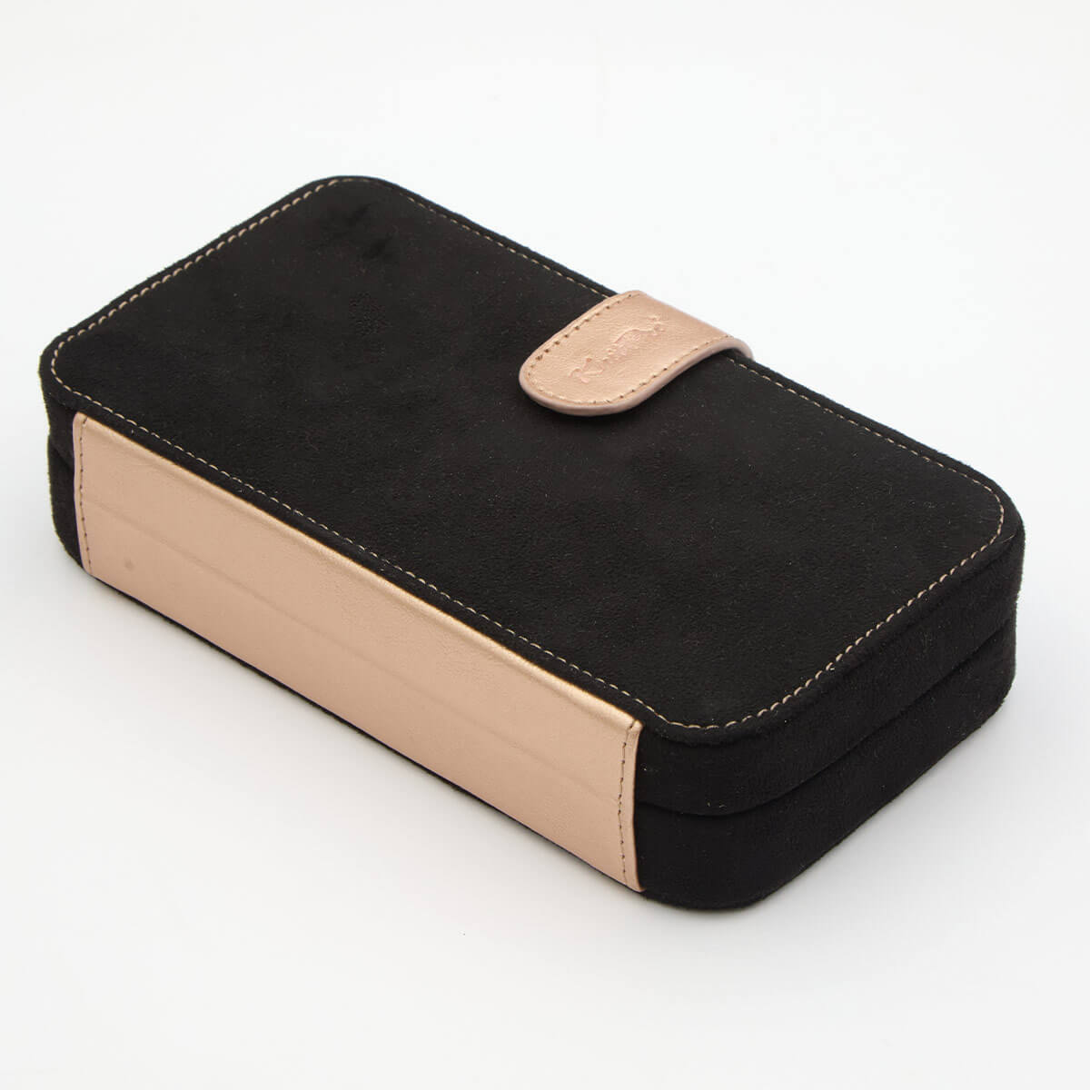 The set also includes practical accessories such as a rose gold tape measure, 10 metal locking markers and scissors. Everything is packaged in an elegant black (coal grey) faux suede case that is perfect for storage and taking with you on the go.