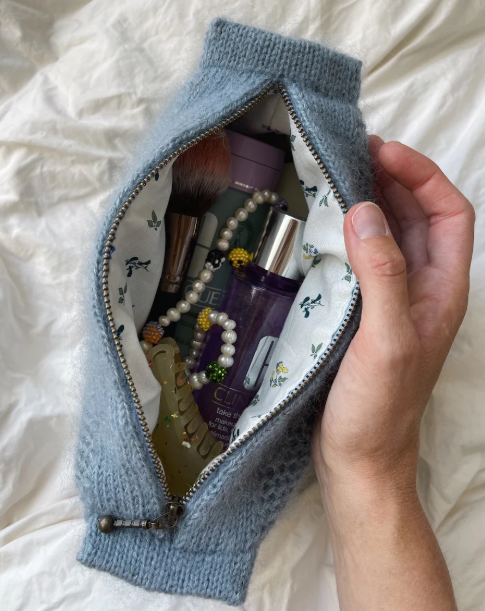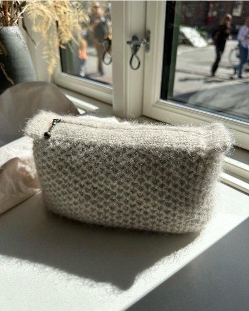 The Honey Clutch is knitted in one piece from the bottom up. First, the bottom is knitted in double stitch. Then, stitches are picked up along all sides of the bottom, and the sides of the clutch are knitted in Honey Comb Brioche. The top of the clutch is knitted by first knitting the two end loops in double stitch, and then knitting the two bars that are on each side of the zipper. Then, the zipper is sewn in place with a needle and thread, and finally, the lining is sewn (by machine or by hand) and assembled into the clutch. The pattern also includes instructions for sewing the lining.