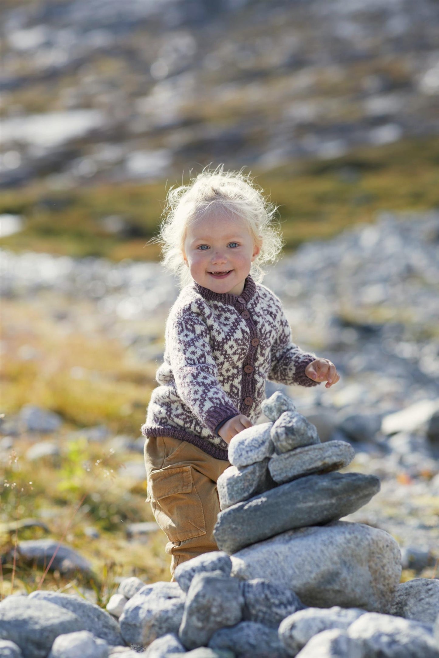 We have retrieved the mountain pattern from the archive and it was originally used on a women's jacket. We think it is so pretty that it deserves a new spring! In these patterns we have used Finull and Lamull, both made from Norwegian wool that we spin ourselves at Rauma Ullvarefabrikk.