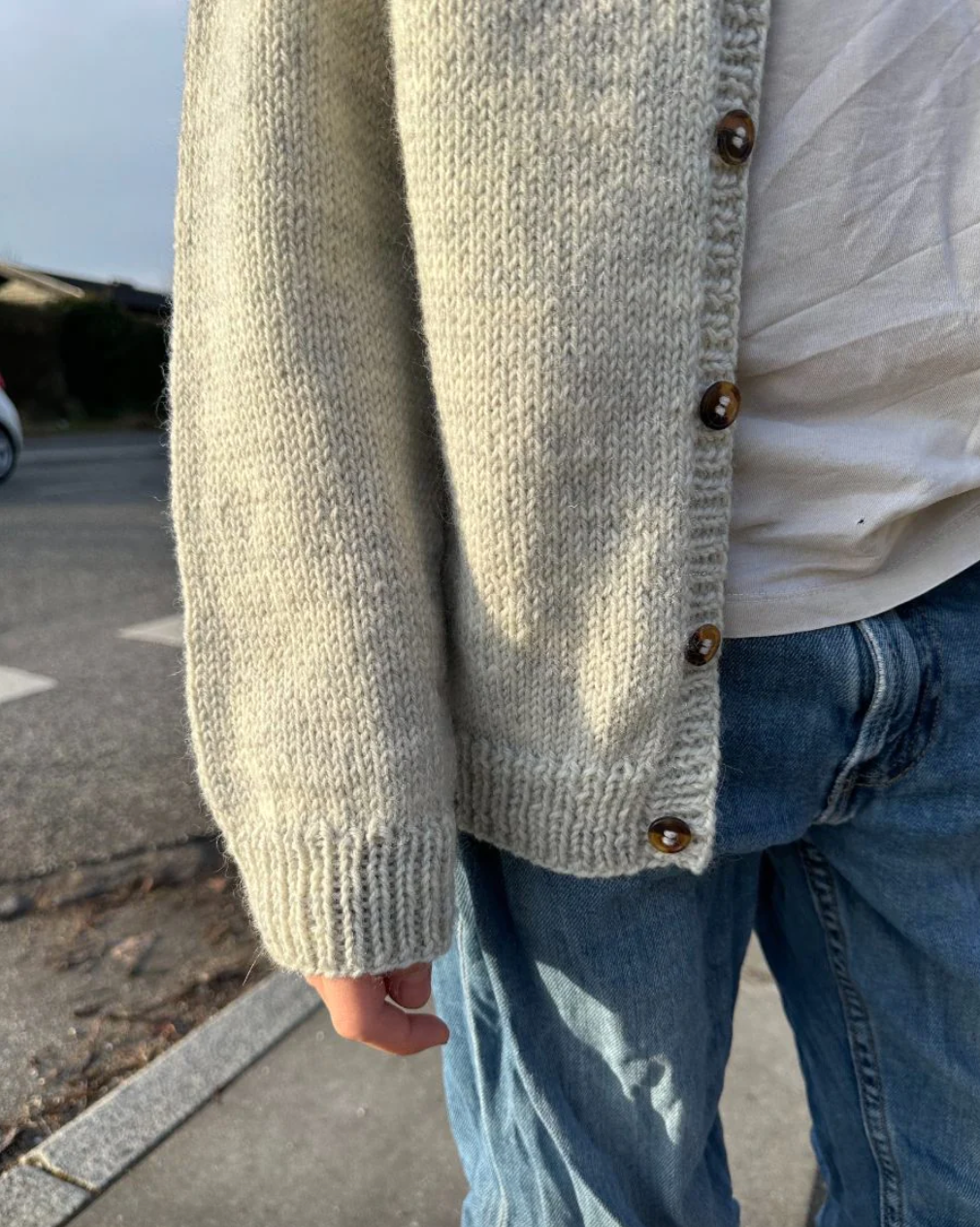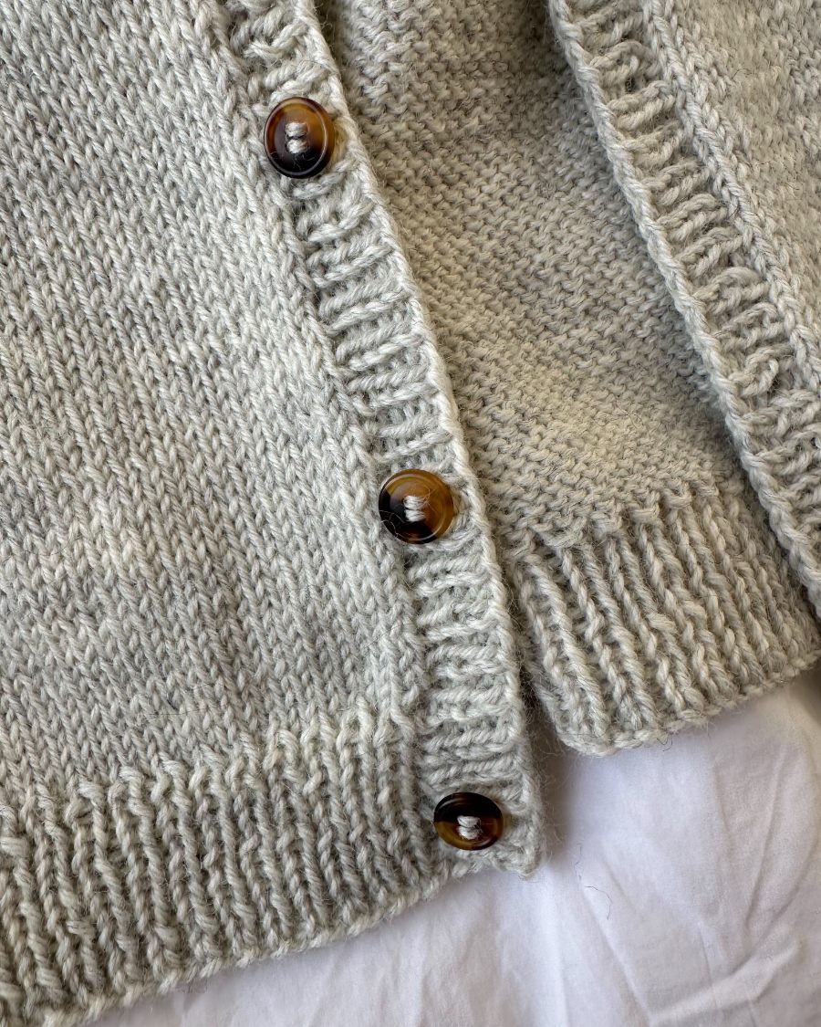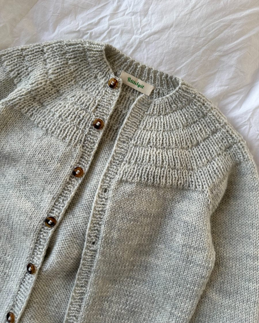 Ankers Jacket is knitted top down, back and forth on circular needles. The yoke consists of rib segments with increases followed by rows with classic raglan increases. The button bands are knitted last, by picking up stitches along the front edges.