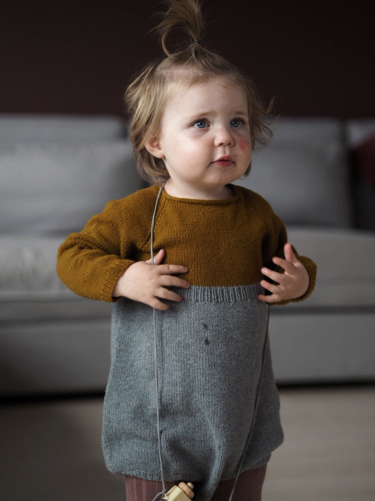 Edith's costume is a simple costume that fits both girls and boys equally well. Knit it in a solid color or play with colors to change the look.