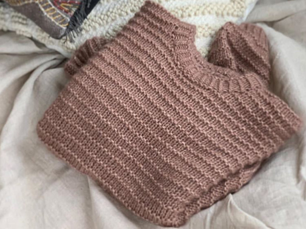 Knitting needles: Circular needle and double pointed needles size 7, or the size you need to achieve the knitting tension. Needle size 6 for sleeve edges and neck.