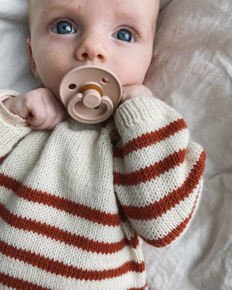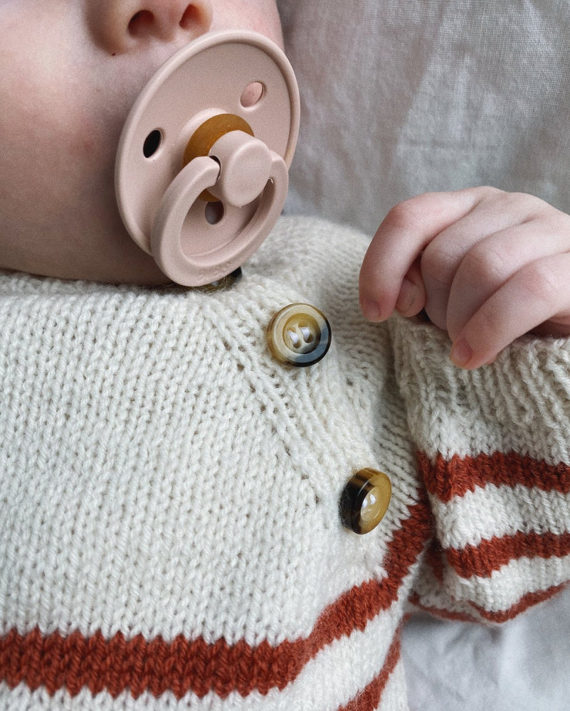 Blouse: 50 (50) 50-100 (100) 100 (100) 100 g Sunday from Sandnes Garn (50 g = 235 m) for the blouse's base color, and 50 (50) 50 (50) 50 (50) 50 g Sunday from Sandnes Garn (50 g = 235 m) for the blouse's stripes. If solid color, yarn consumption is 50 (50-100) 100 (100) 100 (100) 150 g Sunday from Sandnes Garn (50 g = 235 m), 3 (3) 3 (3) 3 (4) 4 buttons (ø = 12-13 mm)