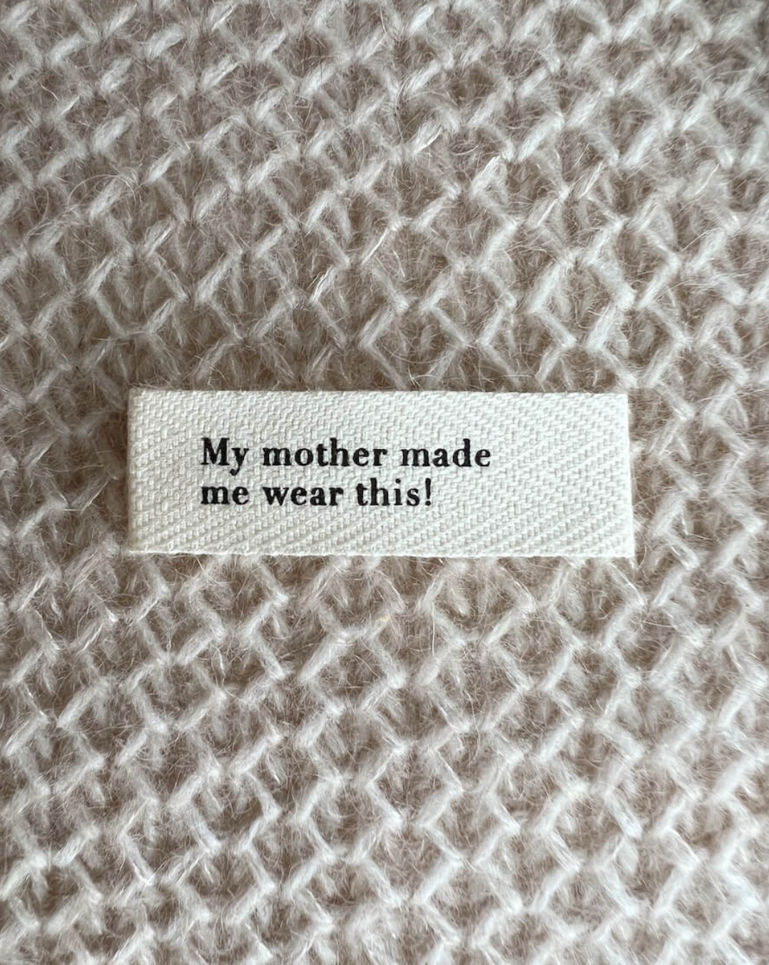 "MY MOTHER MADE ME WEAR THIS!" LABEL
