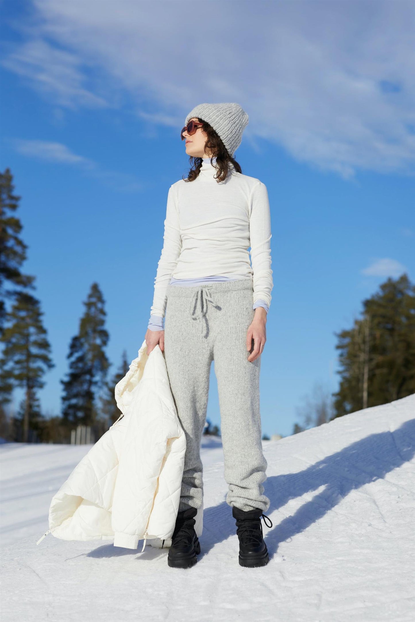In this booklet you will find a lovely set of hoodie, pants and hat. The set is knitted in Puno, a thick yarn in alpaca and wool that creates soft and warm garments.