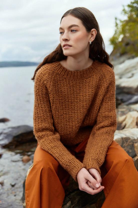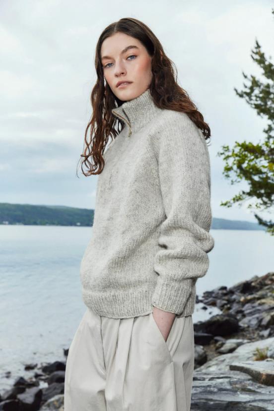 The collection in this booklet is warm and cozy. It contains everyday garments for the fall wardrobe. The garments are knitted in Vams, a thick yarn that creates warm garments that are also light and airy. Here you will find the classic Icelander, Pekka structured sweater, Olle zippered sweater and ribbed hat, the Autumn Heather sweater and the October hat. Several of the models are also available for men in booklet 416.