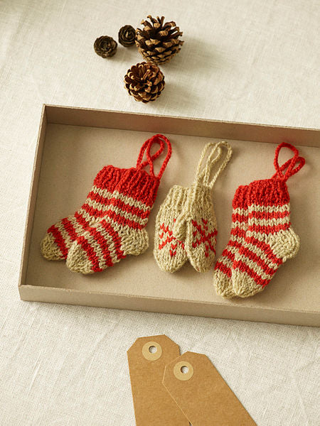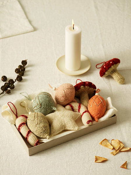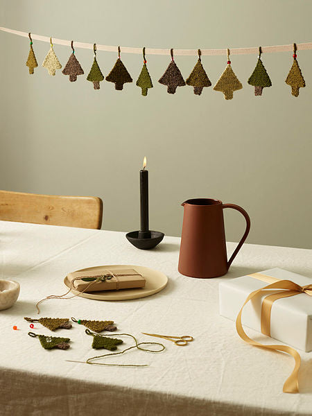 In this booklet you will find small, cozy projects that create the good Christmas feeling! Here are Christmas decorations that are suitable for hanging on the Christmas tree, on a branch or on a Christmas present. Or how about making a whole garland of small Christmas trees, leaves and hearts? The Christmas decorations are nice as they are, but they become extra cozy if they are decorated with beads or embroidery. We have used Finull for all the patterns.