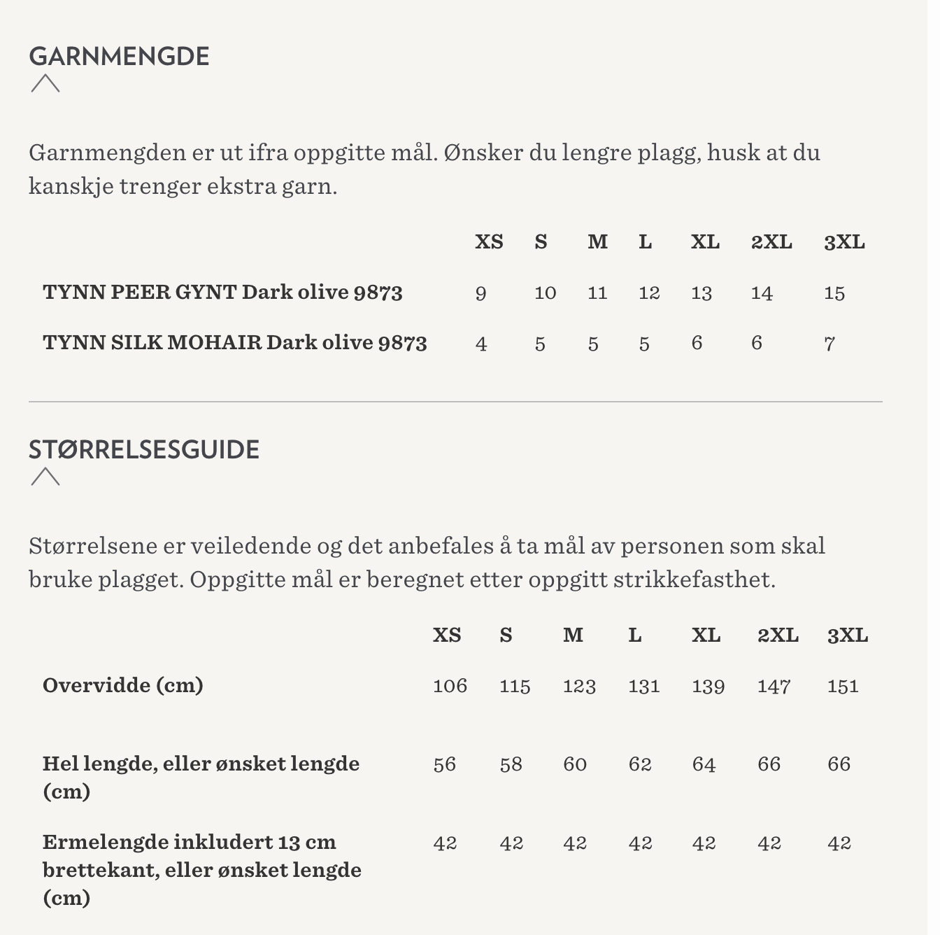 The jacket is knitted top down in English rib with Tynn Peer Gynt and Tynn Silk Mohair.