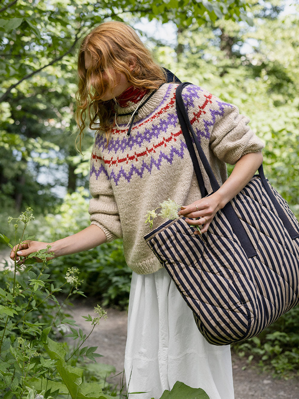 The sweater is knitted in Fritidsgarn from top to bottom or bottom to top.