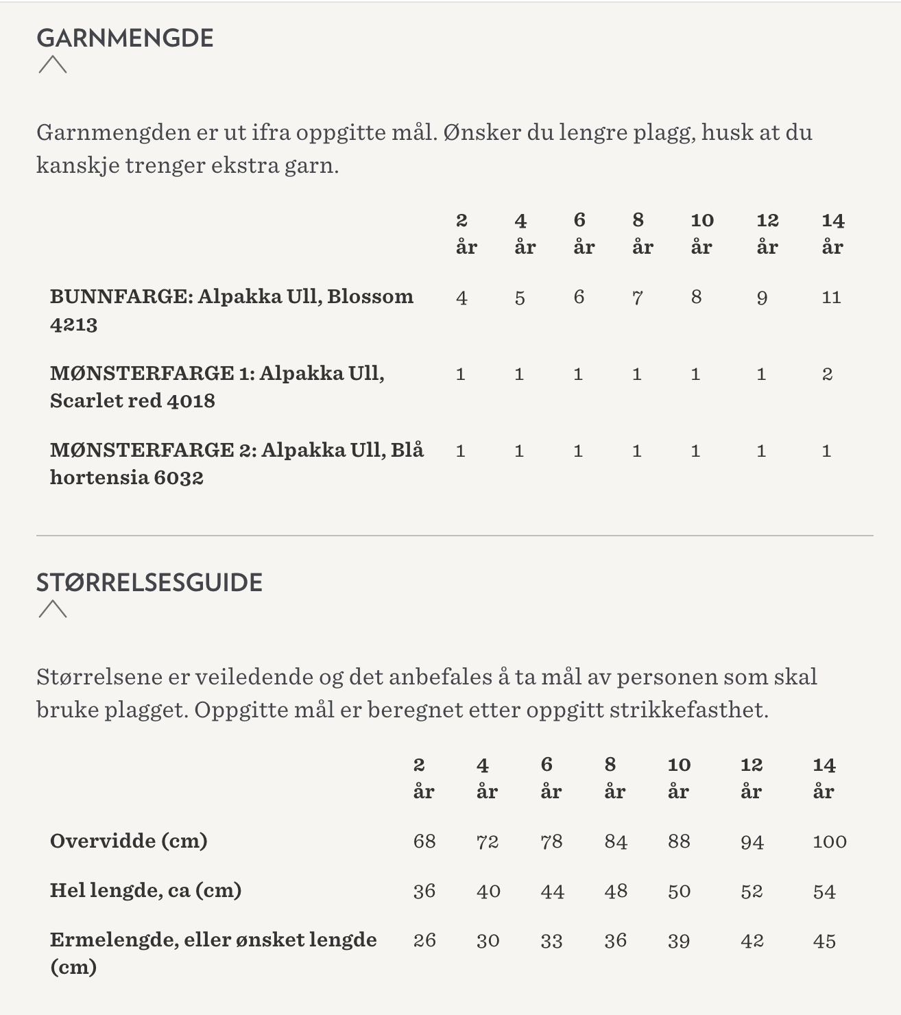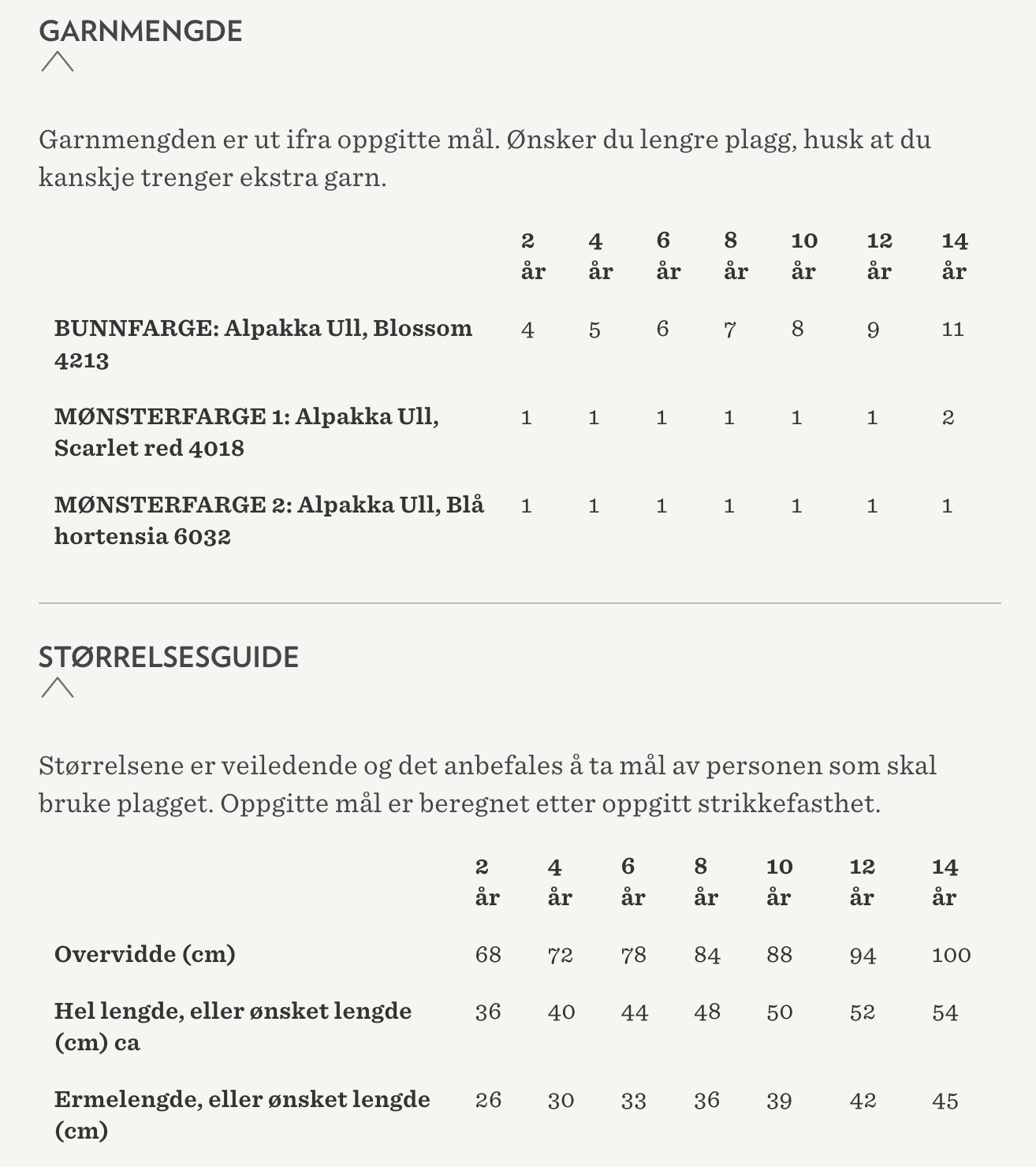 KNITTING GAUGE: 20 stitches and approx. 26 rounds of stocking stitch on needle size 4 = 10x10 cm