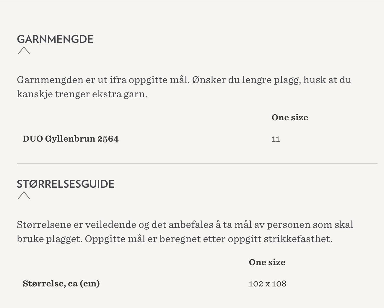 KNITTING GAUGE: 20 stitches diagram on needle size 4 = 10 cm