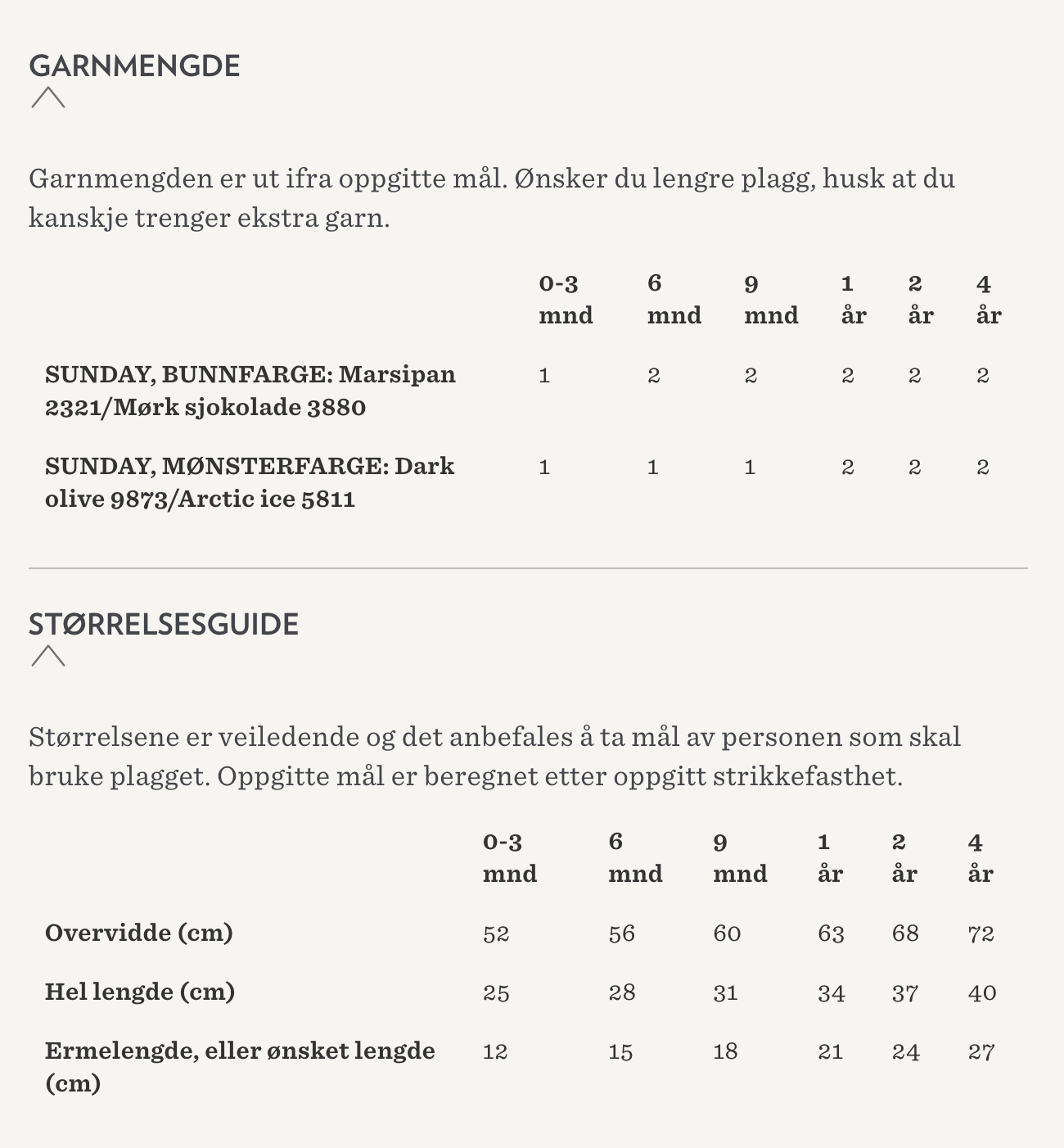 Sleeve length: (12) 15 (18) 21 (24) 27 cm, or desired length