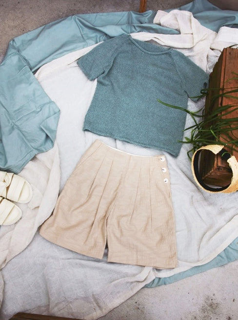I have been looking for the perfect summer outfit. Together with Sandnes Garn, we created the perfect relaxed knitted shorts with either a t-shirt or sweater. Pick your favorite color in Line.