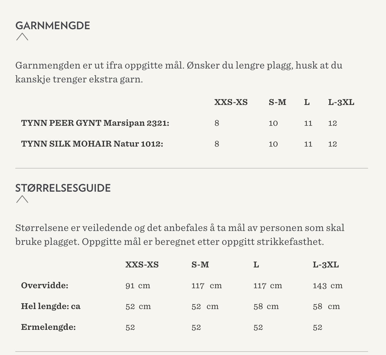 First, squares are crocheted and sewn together to form a sweater in Tynn Peer Gynt and Tynn Silk Mohair.