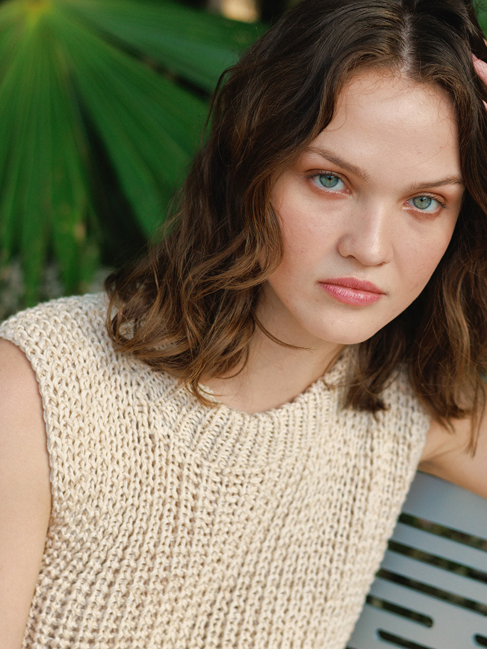 finished in the round to full length. Turn the piece and work the neckline. Finally, crochet an edge around the armhole for a stable edge.