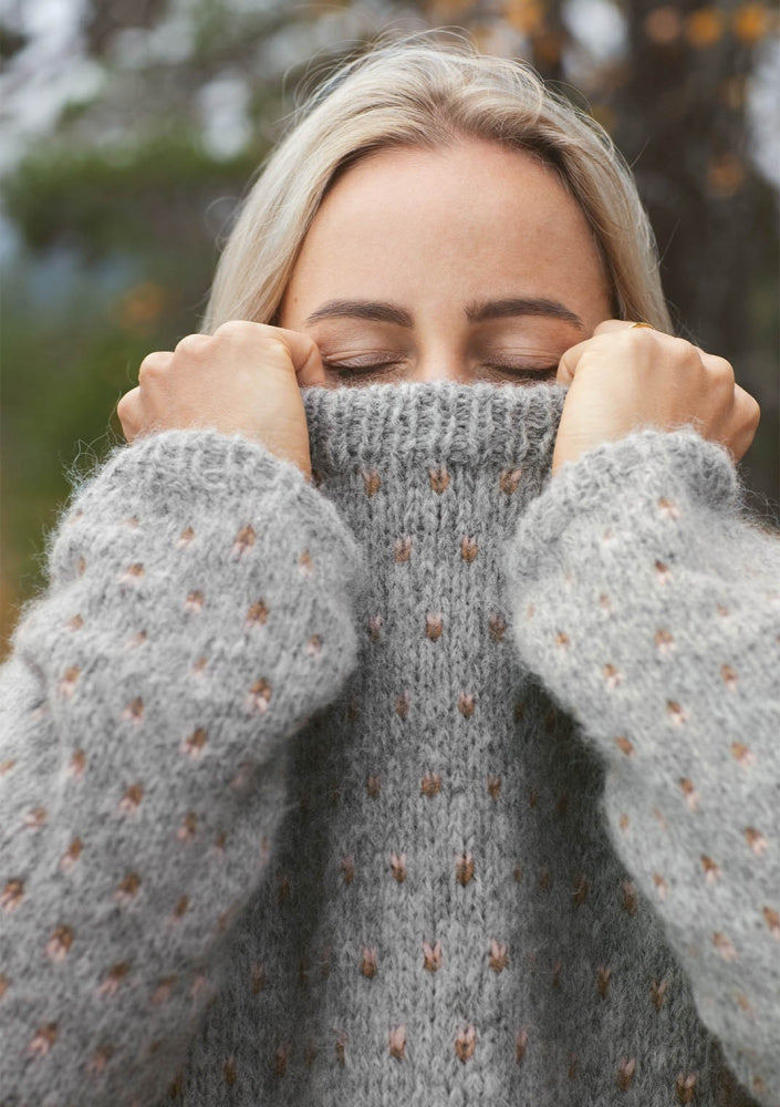 "I have been allowed to design an incredible number of different things with Sandnes Garn, but this design is very special to me. I have never knitted anything for my boyfriend before. If there is anyone who deserves a sweater, it is him. Ånund is my security, he supports me through life's ups and downs, and he always makes me laugh. That is what this sweater is supposed to symbolize; someone who gives you security, warmth, and always makes you feel good. The Ånund sweater is knitted in the yarn KOS which makes it easy to knit, lovely to wear, it can withstand a walk in the forest and the following wash. The sweater can be knitted in a classic women's model or in my favorite unisex/men's model. I have found my Ånund - so I hope you will knit the Ånund sweater for yourself or someone you love."