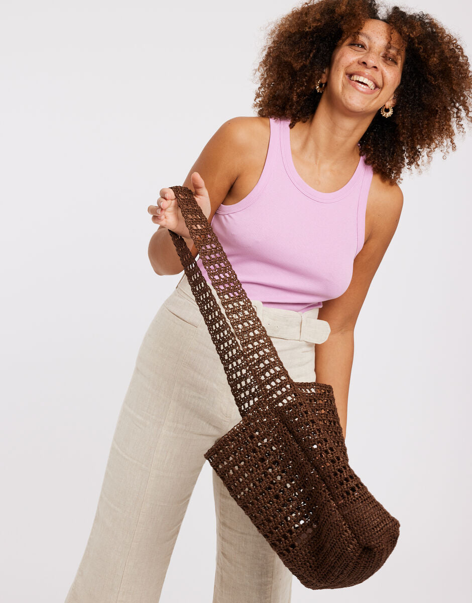 Ever wanted to crochet your own arm candy? Now’s your chance. This easy-level make uses half double crochet and chain spaces to stitch up a sweet shoulder bag in 15 hours.