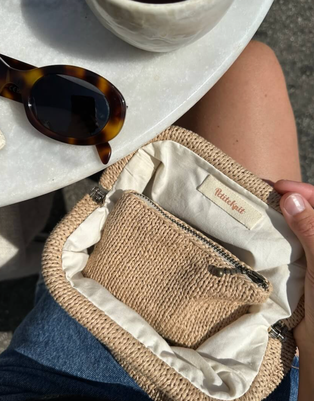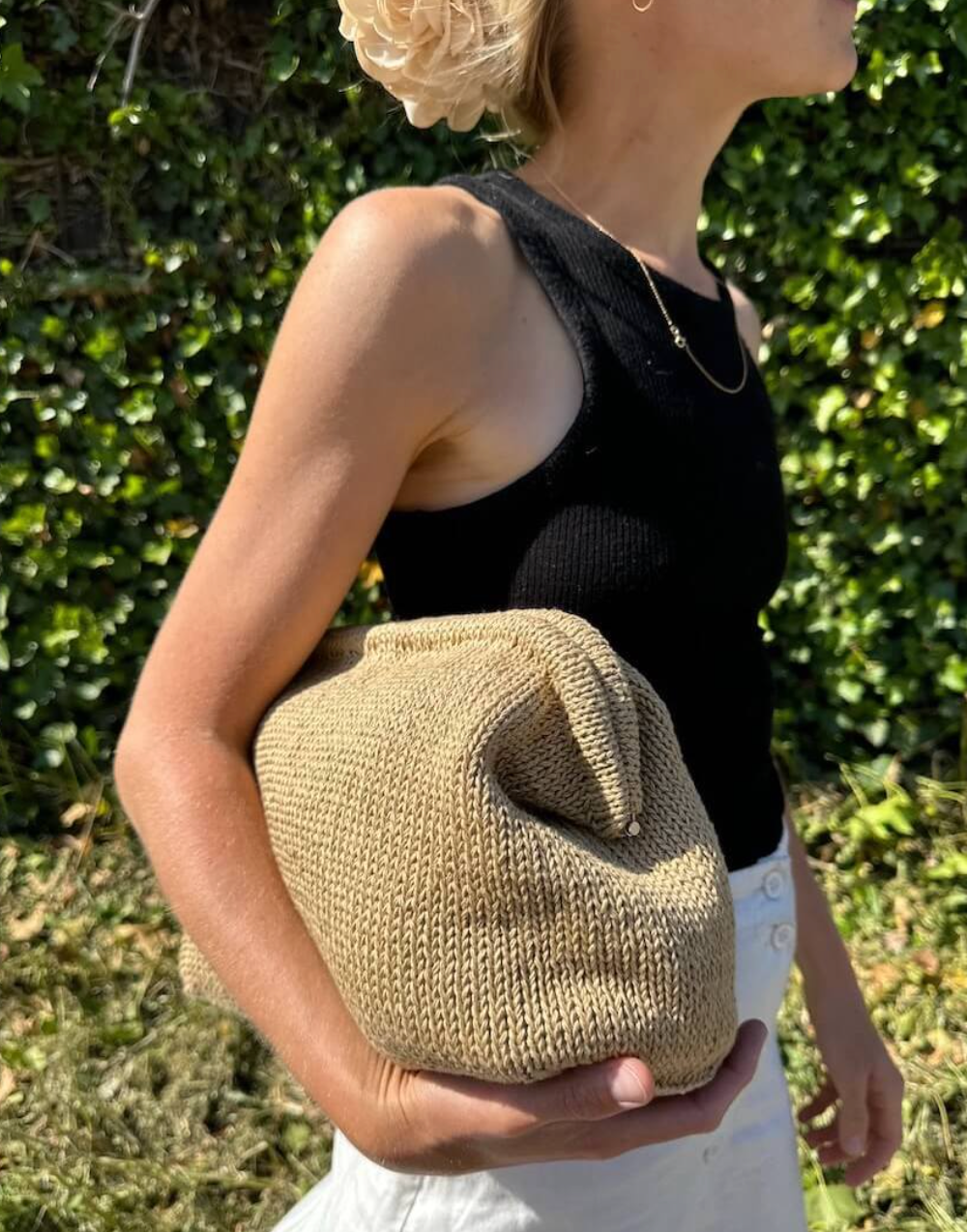 The brown Cleo Clutch is knitted in Japanese cotton from Isager in color 59.